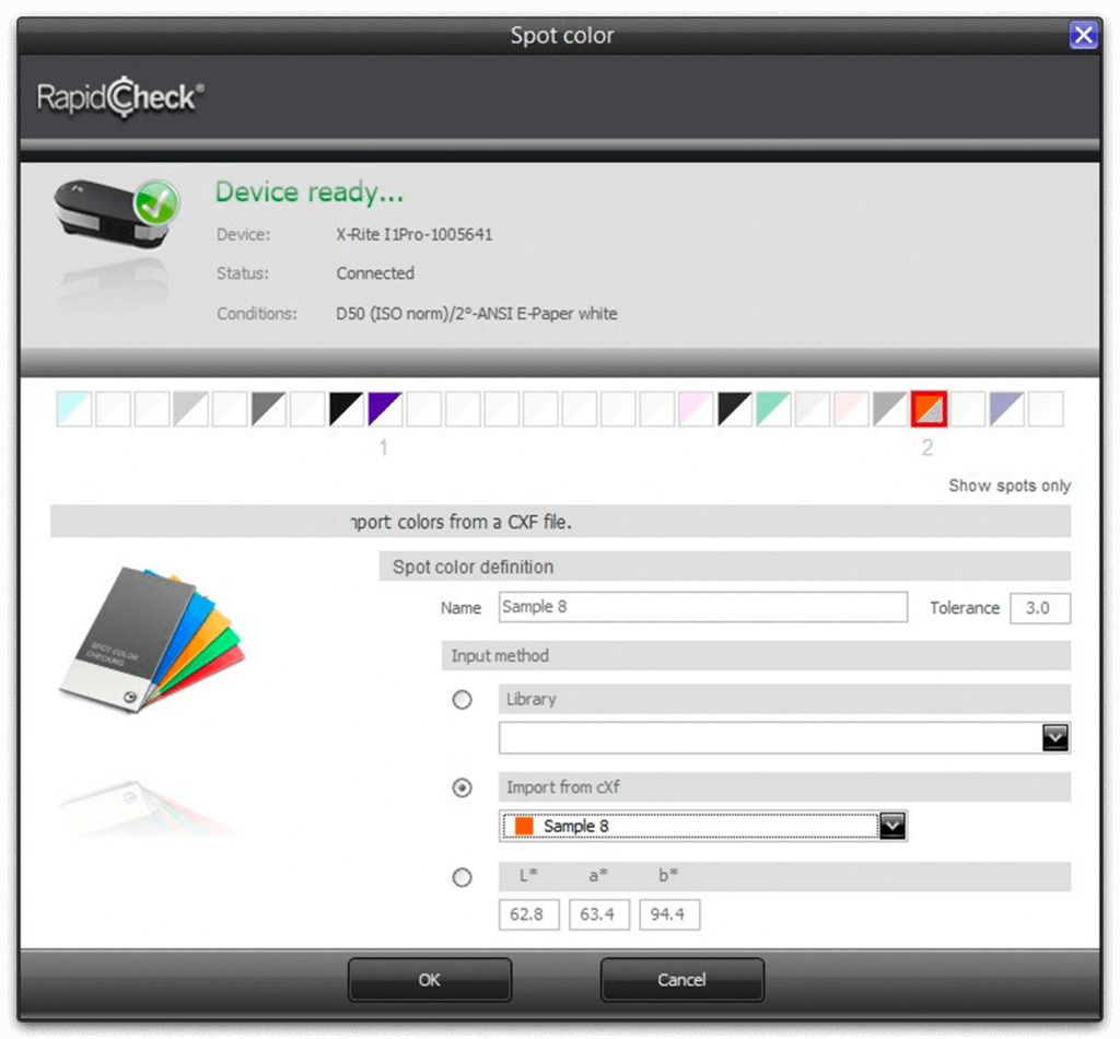 Use color libraries, import CXF, and check Pantone colors.
