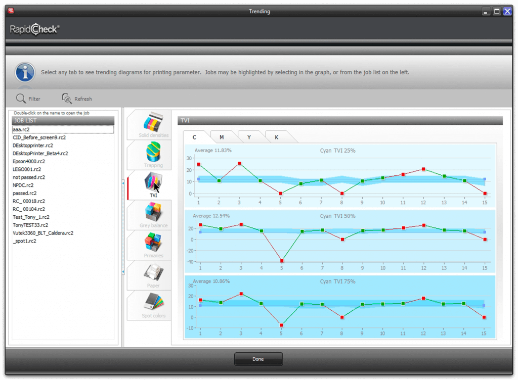 Customize your views by customer, job, ink, paper, date, or other parameters to know how to