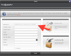 When you downloaded and installed the program, you had a box appear like this. The arrow indicates your machine ID which needs to be entered in the box above.