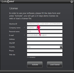 When you downloaded and installed the program, you had a box appear like this. The arrow indicates your machine ID which needs to be entered in the box above.